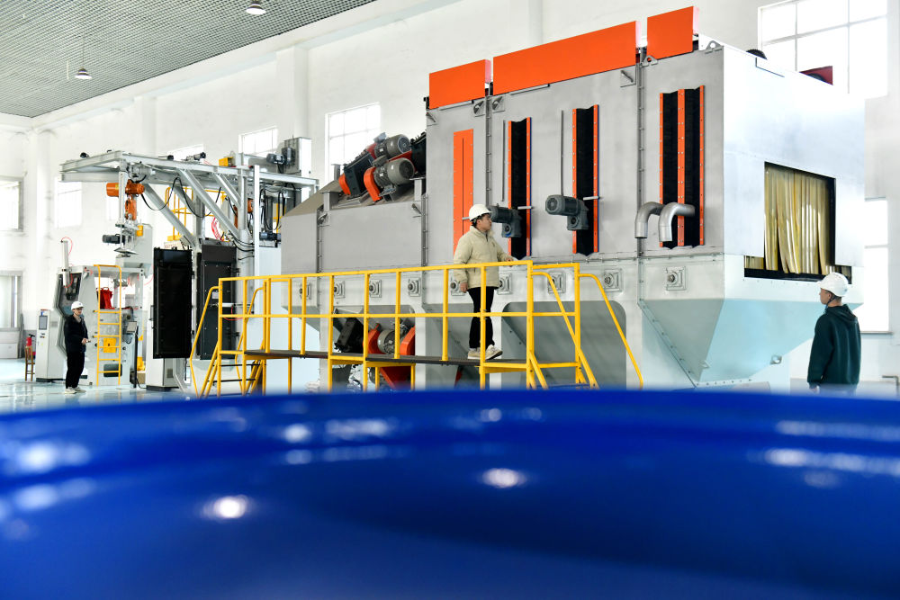 在山东开泰集团智能抛喷技术研究院,工作人员在调试机械设备。