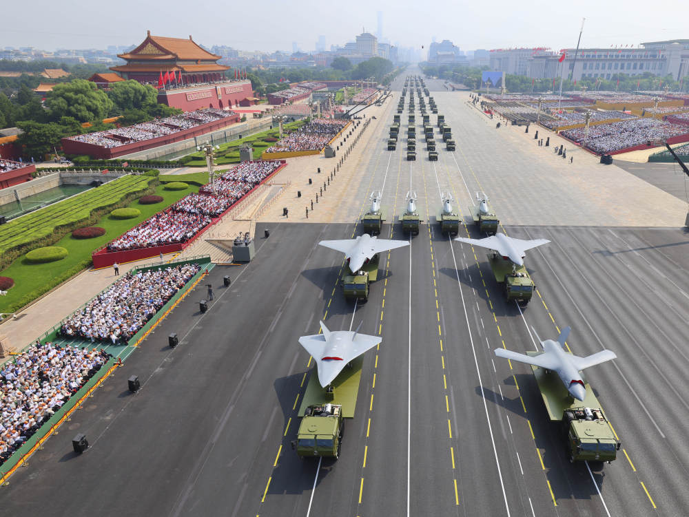 纪念中国人民抗日战争暨世界反法西斯战争胜利80周年大会在北京隆重举行。这是装备方队接受检阅。