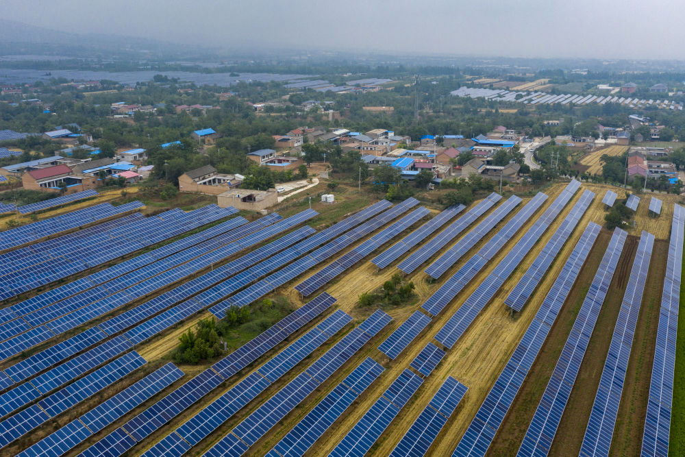 在山西省运城市芮城县夭上村拍摄的光伏基地。