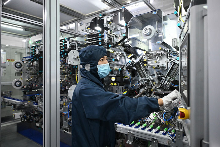 在山西阳泉,华阳新材料科技集团华钠芯能科技有限责任公司的工作人员在操控设备。