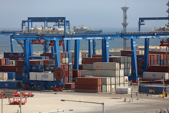 秘鲁钱凯港码头摆放的集装箱。位于秘鲁首都利马以北约80公里的钱凯港于2024年11月正式开港,标志着中秘共建“一带一路”取得新的重要成果。