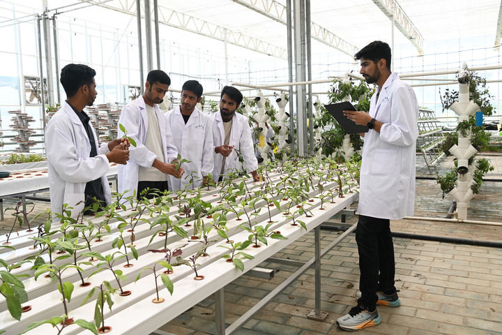 在甘肃省张掖市山丹县培黎职业学院,巴基斯坦留学生在现代农业产教融合实践基地进行实操练习。
