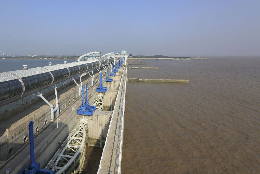 在浙江绍兴钱塘江与曹娥江汇流之处,“中国第一河口大闸”曹娥江大闸犹如一道飞虹横架两岸,大闸一侧是汹涌澎湃的钱塘江潮,另一侧则是碧绿静谧的曹娥江水。作为浙东引水工程的“咽喉”,大闸的建成让“一江春水向东流”从设想变为现实。