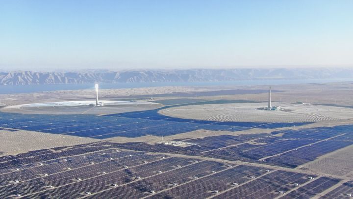 在青海省海南藏族自治州共和县塔拉滩绿色产业发展园区拍摄的光伏电站。