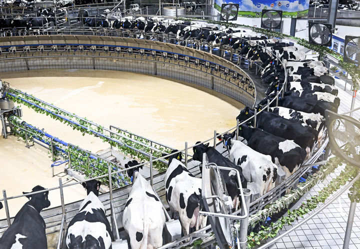 呼和浩特市伊利敕勒川生态智慧牧场挤奶车间。