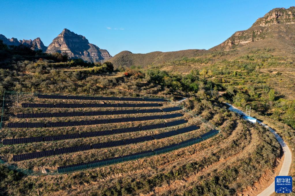在山西左权县龙泉乡连壁村,漫山遍野的光伏板蔚为壮观。光伏发电让村里2000多亩荒坡荒地变废为宝,村里一年能增收100万元。
