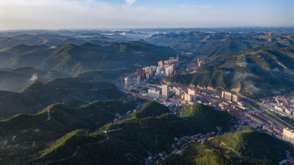 青山环抱的延安市安塞区城区。