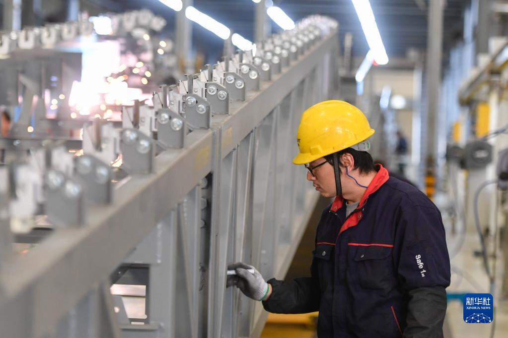 工人在位于杭州市临平区的西奥电梯数字工厂生产车间内作业(12月17日摄)。浙江省各地企业克服疫情影响,在做好疫情防控的前提下抓生产、保订单,有序开展各项工作。