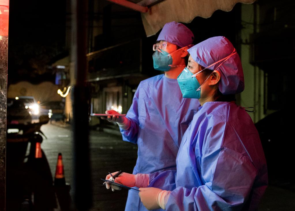 3月16日晚,流调人员在进行轨迹排查。