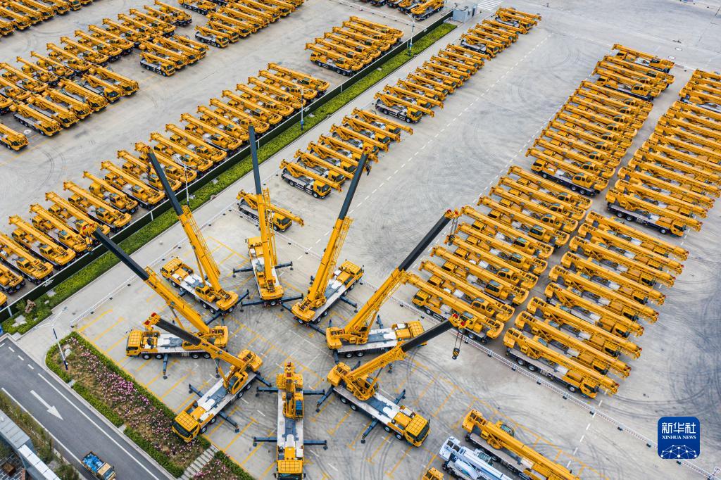 这是5月9日拍摄的江苏徐工集团重型机械有限公司的产品调试场(无人机照片)。