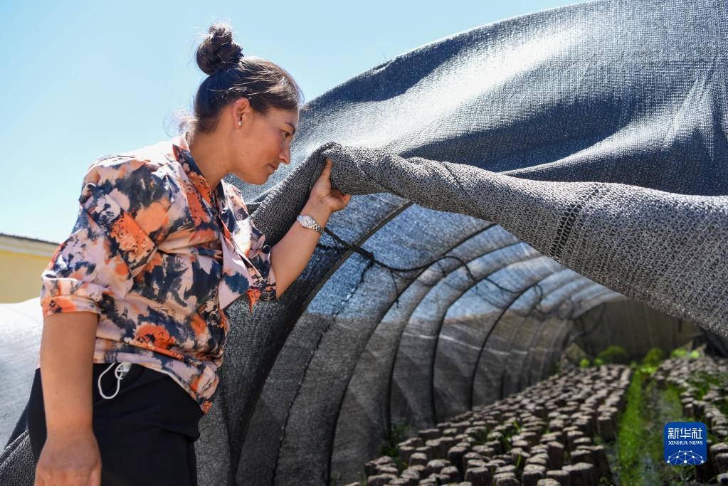 在新疆乌什县依麻木镇,在新疆维吾尔自治区党委组织部、老干部局驻托万克麦盖提村“访民情惠民生聚民心”工作队的帮助下,不少村民通过培植木耳增收致富(2022年6月7日摄)。