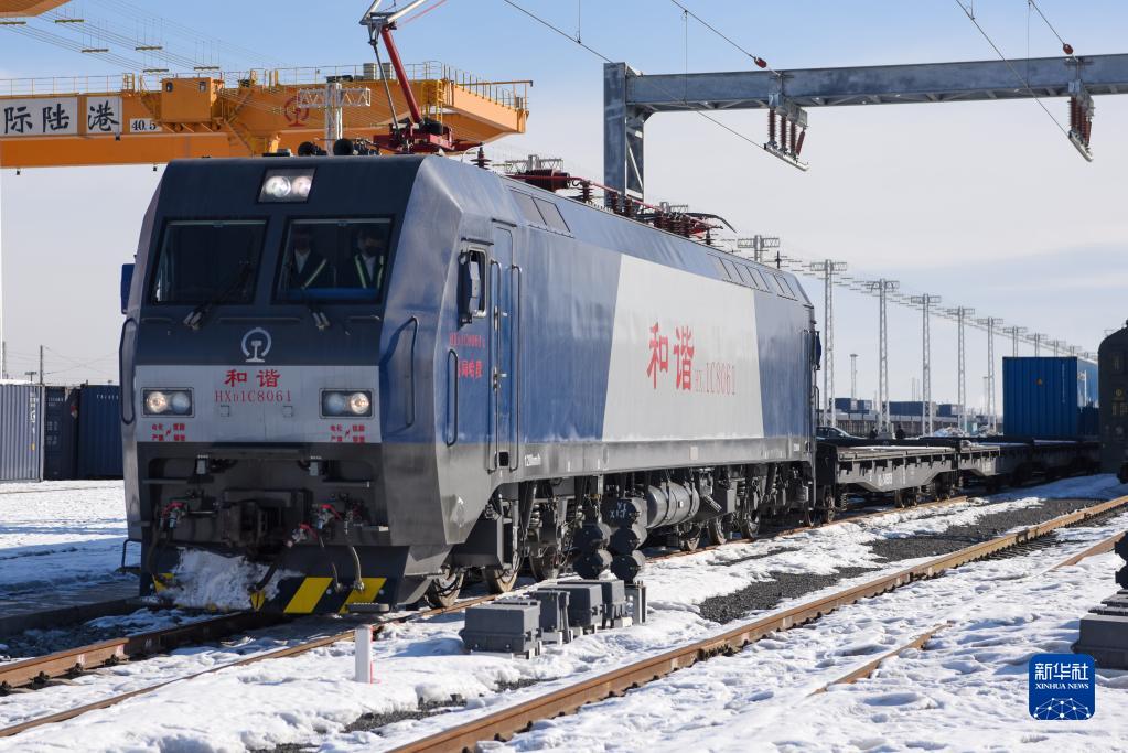 在新疆乌鲁木齐,一列中欧班列缓缓驶离中欧班列乌鲁木齐集结中心开往土耳其(2020年2月20日摄)。