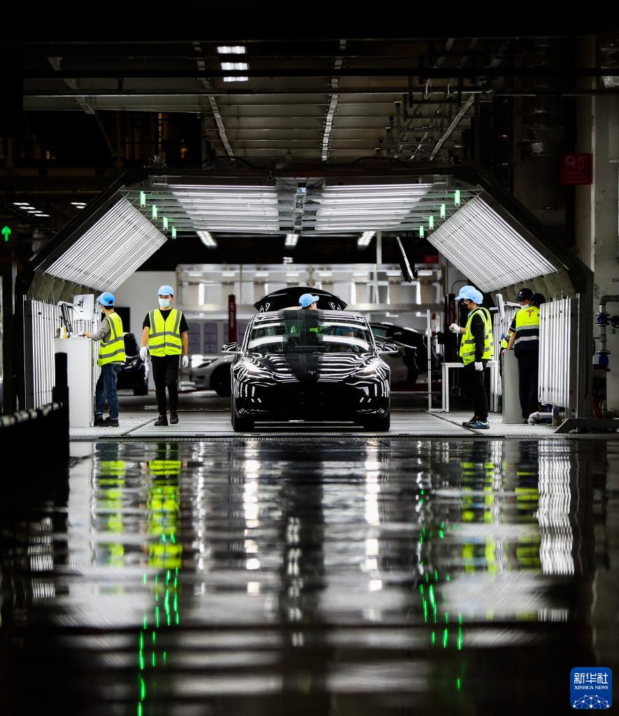 工作人员在特斯拉上海超级工厂内作业(2020年11月20日摄)。