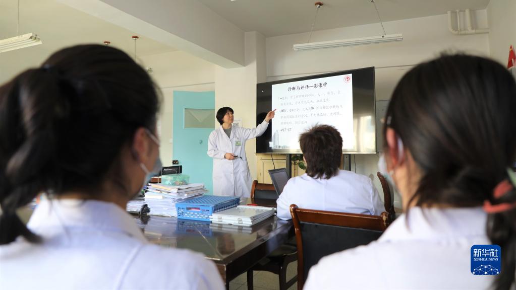 天津市中心妇产科医院妇产专业副主任医师饶阳给甘南州人民医院妇产科的医生进行培训(2021年1月15日摄)。