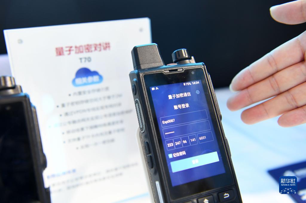 一家参展企业代表在2022年国家网络安全宣传周网络安全博览会上介绍量子加密对讲(2022年9月4日摄)。