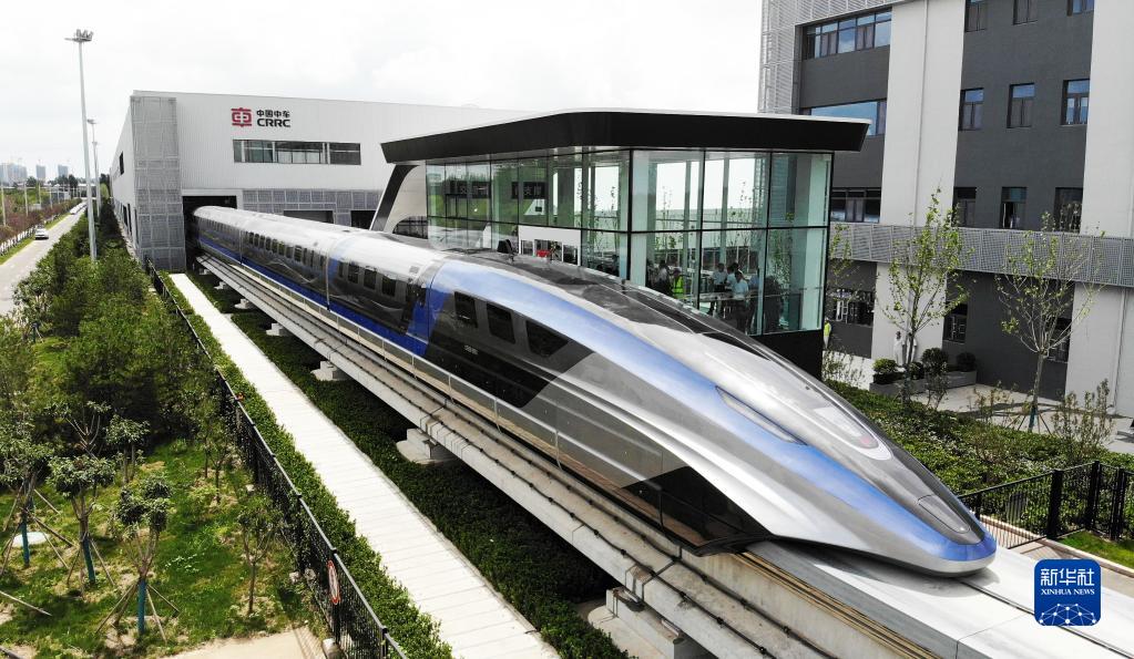 这是在山东青岛拍摄的时速600公里高速磁浮交通系统(无人机照片,2021年7月20日摄)。