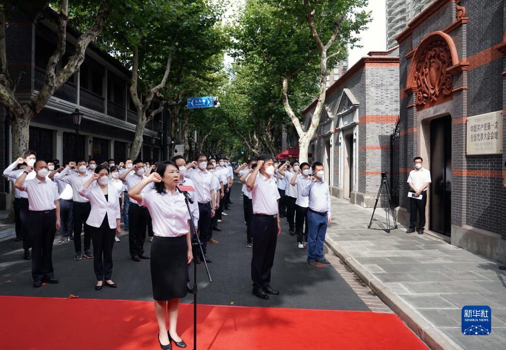 上海市新党员代表入党宣誓活动在中共一大会址前举行(2022年7月1日摄)。