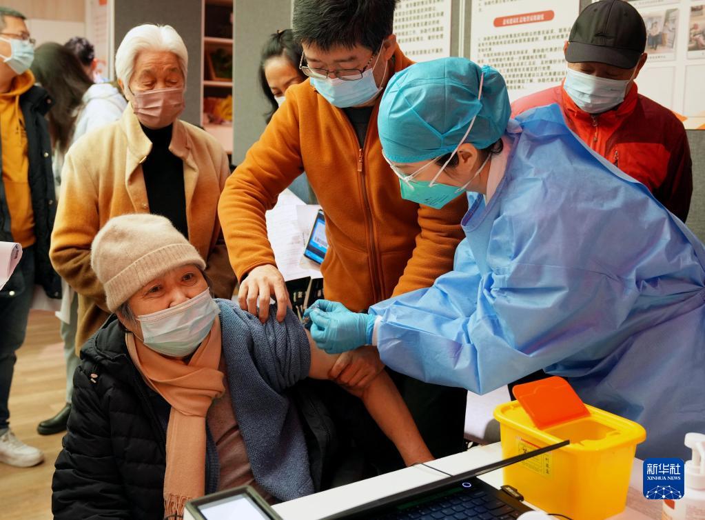12月9日,在上海市黄浦区打浦桥街道大同居委会,接种小分队的护士在为老年人接种新冠疫苗。