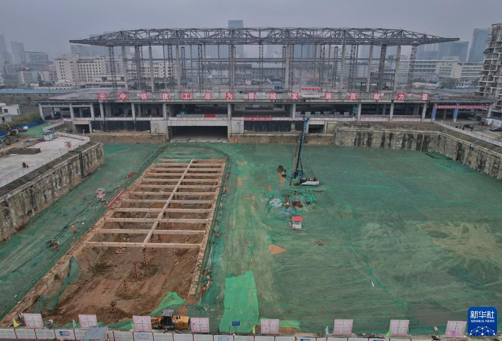 2022年12月15日,成都站扩能改造现场,部分站房钢结构搭建已经完成(无人机照片)。