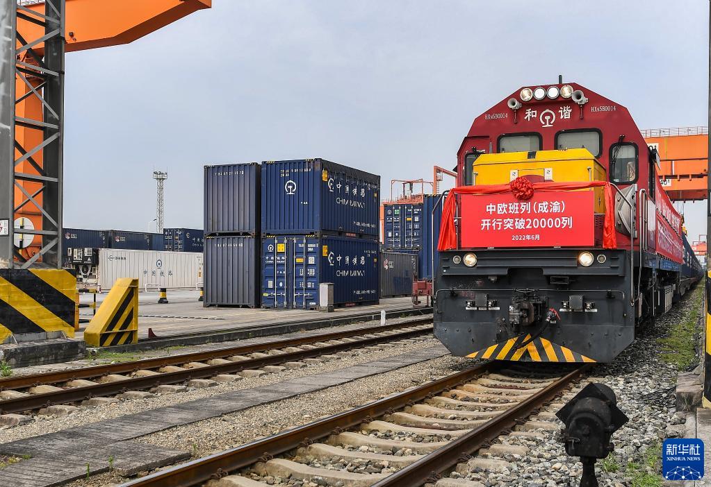 中欧班列(成渝)列车在成都国际铁路港等待发车(2022年6月30日摄)。