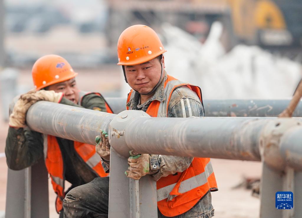 1月23日,工人在重庆两江新区新能源汽车产业园基础设施配套项目现场进行钢结构材料拼装作业。