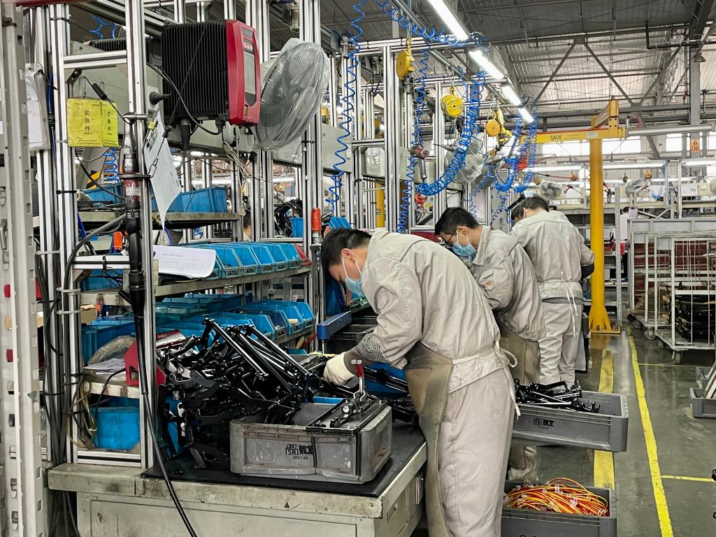 西安伊思灵华泰汽车座椅有限公司生产车间繁忙的工作场景。