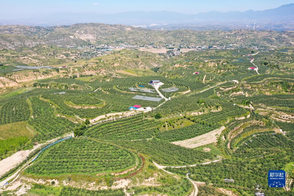 这是位于山西省汾西县的一处梨园(2022年9月12日摄,无人机照片)。