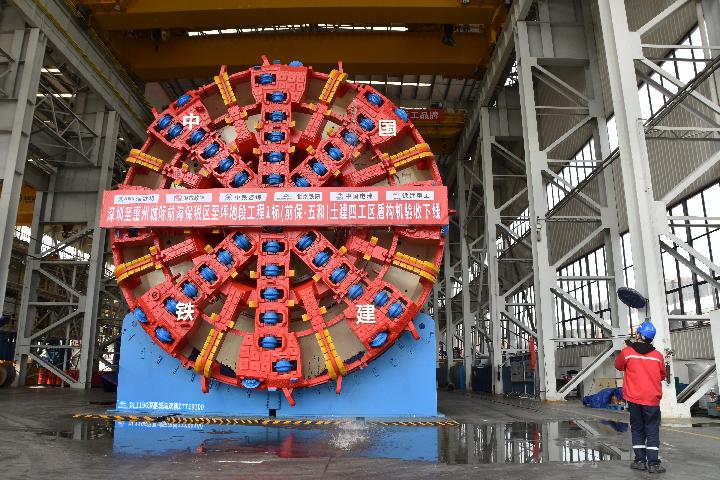 铁建重工生产线上正在调试的盾构机。新华社记者白田田 摄