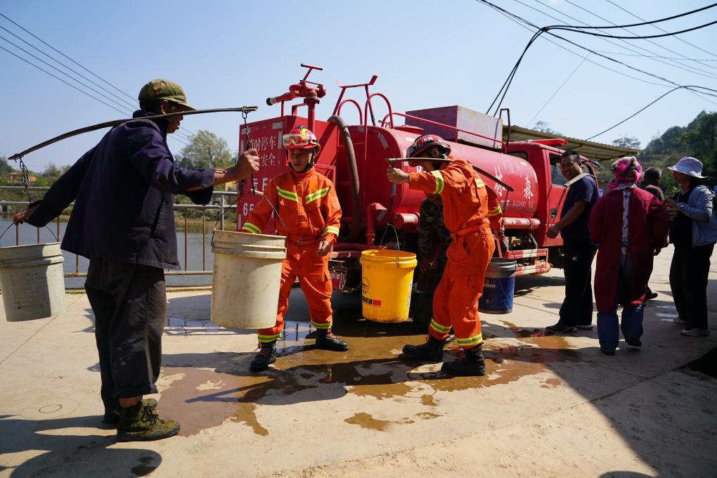 前来取水的71岁村民李明发告诉记者,当地积极组织消防力量送水到村里,水接回去主要用来做饭。50岁的村民白玉能说:“很久没下雨了,还好有送水的,帮了大忙。”